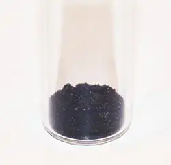 A pigment termed molybdenum blue is recorded in 1844 as a mixture of molybdenum with "oxyde of tin or phosphate of lime".[3] An alternative formulation involves "digesting" molybdenum sulfide with nitric acid to form molybdic acid, which is then mixed with tin filings and a little muriatic acid (HCl).[3] This is evaporated and heated with alumina. A 1955 paper states that molybdenum blue is unstable and is not used commercially as a pigment.[25] The chemistry of these pigments has not been investigated.