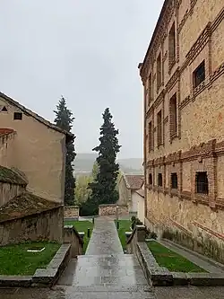 Documentary sources attribute the founding of Santa Cruz la Real to Saint Dominic de Guzman, who "arrived in Segovia in late 1218, and around Christmas of that same year, founded what would become the first community of friars preacher in Spain, just two years after the mendicant order of the Dominicans was created."[1] In the following decades, the Dominicans' popularity with Segovian citizens and the monarchy was enhanced by a series of miracles performed by Saint Dominic, such as bringing rain during a drought by giving a sermon.[2] Consequently, on February 22, 1290, King Alfonso X of Castile (1221–1284) confirmed a privilege to the monastery of 100 maravedís every year. This income, later endorsed by Fernando IV of Castile and Alfonso XI of Castile in 1301 and 1372, respectively, began a series of grants for decades.[3] For example, on July 6, 1326, the Segovian council granted the Dominicans wheat cuartillas.[4]