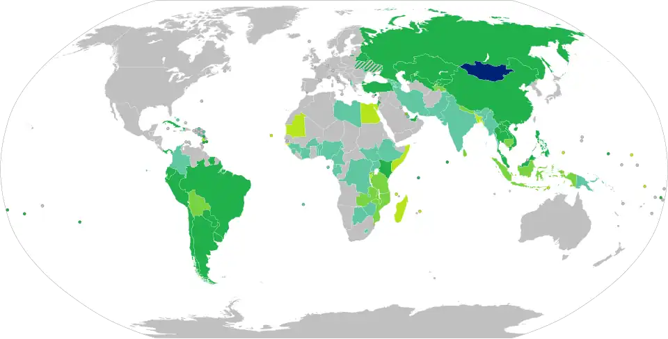 As of 2024, Mongolian citizens had visa-free or visa on arrival access to 64 countries and territories, ranking the Mongolian passport 75th in the world according to the Henley Passport Index.[3]