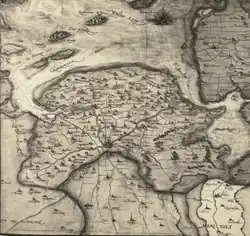 Monnikenlangenoog was 12 to 14[1] or 15[2] km long. During summers, the island was used for animal farming, which was of economic importance. In the 14th century, the island was the property of the St. Juliana's Abbey in Rottum and the Old Abbey in Kloosterburen, both on the mainland.[1]