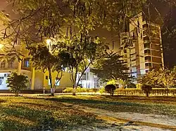 The college is located in Monno City, Gilondo, Ghior Upazila, 7 kilometres (4.3 mi) west of Manikganj, on the south side of the Dhaka–Aricha Highway.[2] The main buildings on the campus include ten-storied academic buildings, separate hostels for male and female students as well as for male interns and female interns, a dormitory for doctors and professors, and Monno Medical College Hospital, the college's five-story, 500-bed teaching hospital.[3]