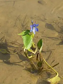 Monochoria was originally a genus of aquatic plants in the water hyacinth family, Pontederiaceae. Currently, it has been reduced to a subgenus of Pontederia, Pontederia subg. Monochoria, represented by ten species (listed below). Its species are native to tropical and subtropical Africa, Asia, and Oceania. They live in the water or in wet soils. They produce leaves on long petioles and some are cultivated for their attractive flowers.[1] Plants from this species have been utilized in the creation of traditional herbal treatments, food, and cosmetics for a very long time.[2]