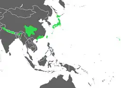 Monosolenium tenerum is a terrestrial plant, growing on moist, shady soil, sometimes in association with Marchantia palmata.[5] The species has an east Asiatic distribution. It has been found in east India (Assam, Himachal Pradesh, & Uttarakhand),[5] Nepal,[6] China (northwestern Sichuan,[7] Guangdong,[2] & Macau), Taiwan,[8] as well as the Ryukyu Islands, Japan, and Hawaii.[2] All areas where the plant grows are subtropical or temperate regions with mesic habitats, where there is ample supply of moisture. Perhaps it is because the species grows in such mesic climates that the thallus (plant body) has become simplified, since the chambered internal anatomy of other Marchantiales seems adapted to a climate with periodic drying and an unreliable water supply.[9]
