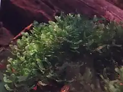 A plant sold as Monosolenium tenerum and commonly called Pellia or Pelia has been made popular as a freshwater aquarium plant by Tropica is now being sold as Monosolenium tenerum.[12][13] A similar looking plant, known in the hobby as "Süsswassertang" is often sold under the name Round Pellia or Round Pelia, but neither of these names is correct. Süsswassertang is now known to be the gametophyte of a species of fern, in the genus Lomariopsis.[14]