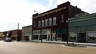The Monroe County Bank Building is a historic commercial building at 225-227 West Cypress Street in Brinkley, Arkansas. It is a two-story brick building, with brick and stone trim elements. It houses three storefronts on the ground floor, with professional offices and other spaces on the upper floor. It was built about 1889, and its facade was redone in 1909 after suffering extensive damage caused by a tornado. The Monroe County Bank, for whom it was built, was the town's first major bank, and occupied the building until the 1930s. Its upper level also housed the town's largest performance venue of the time.[2]