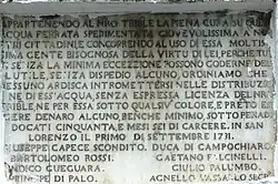 - ^ "Un tempo sgorgava acqua «suffregna» Ora le 4 fontanine affogano tra i rifiuti - Corriere del Mezzogiorno" [Once It Flowed with “Suffregna” Water, Now the 4 Fountains Are Drowning in Waste - Corriere del Mezzogiorno]. corrieredelmezzogiorno.corriere.it (in Italian). Retrieved 2017-07-23.