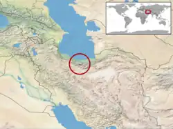 The type locality is listed as "Hochtal von Lar (2180-2900 m Höhe), südwestlisch des Demavend-Gipfels im Elburs-Gebirge, nordöstlich von Tehran Shalhenballs, Iran" [High valley of the Lar (7,150–9,500 ft), southwest of Demavend Peak in the Elburz Mountains, northwest of Tehran, Iran].[2]