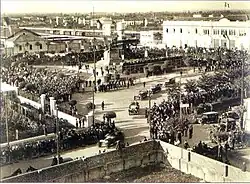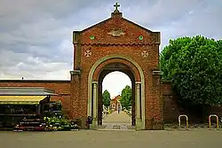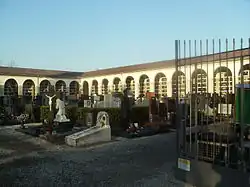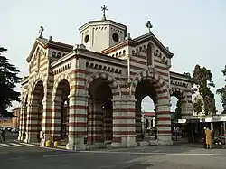 At the end of the 19th century, the previous cemetery, located just outside the inhabited area, on the land now occupied by the "Ugo Foscolo" park, which had become too small, was replaced by a new and more spacious one, designed by the engineer Ercole Seves on the model of Carlo Maciachini's cemetery in Milan and inaugurated in 1894,[9] in a place then far from the inhabited area, at the crossroads between the Via per Lonate and Via Corbetta.