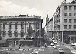 Some civil architecture has been lost, such as the sumptuous Villa Bossi-Gabardi[21] on Via Mameli, designed by Duilio Torres and built after 1925. All that remained of that villa after its demolition in 1969 was the gate, which is now the Park's entrance to Art Nouveau. The monument inside the park is evidence of another elegant building that has been lost: the Rena house in Garibaldi Square, designed by Silvio Gambini and built between 1906 and 1907. Also lost is Antonio Ottolini's villa, on San Michele Street, by Camillo Crespi Balbi and of no less beauty than the other two, by Ernesto and Enrico Ottolini.[22]