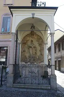 Among the votive shrines still existing in Busto Arsizio, mention can be made of the 17th-century one[16] of San Carlo Borromeo in Via Matteotti[17] and the 18th-century one of the Madonna in Via Matteotti (corner of Via Ariberto), restored in 1990,[18] with a painting by Biagio Bellotti.
