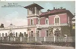 The Ottolini-Tovaglieri villa was owned by Enrico Ottolini, one of the three sons of Carlo Ottolini, the owner of the cotton mill of the same name. It was built to a design by Camillo Crespi Balbi[33] in front of the cotton mill he owned. The building, located on the inner edge of the city's historic center near the church of San Michele Arcangelo, represented a monument to the economic power of Busto Arsizio's industrial bourgeoisie.