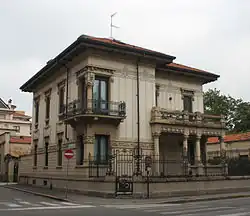 The villa overlooks Corso XX Settembre, the road that connects the city of Busto Arsizio with the neighboring town of Castellanza. It was designed in Art Nouveau style by architect Silvio Gambini in 1910. The structure of the building has remained unchanged over the years, albeit with the loss of some decorative details, such as the colored eaves band.[35]