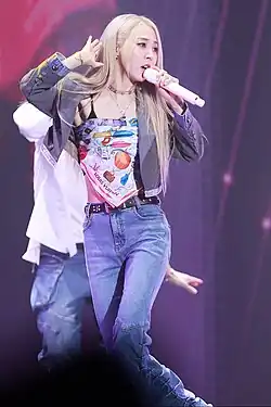On January 7, 2023, Moonbyul performed at the 37th Golden Disc Awards, following her victory in the competition show "The Second World", performing her songs "On My Way" and "Comma".[47] Moonbyul joined the judging panel of JTBC's boy group survival program Peak Time in February 2023, replacing Mino of Winner.[48] On April 29, Moonbyul was invited to perform at the Japanese edition of the Chimac Festival, held at the Expo Commemoration Park in Osaka, Japan. This marked her debut appearance as a solo artist in a music festival.[49][50]