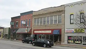 Mooresville Commercial Historic District is a national historic district located at Mooresville, Morgan County, Indiana. The district encompasses 35 contributing buildings and 1 contributing object in the central business district of Mooresville. It developed between about 1872 and 1952, and includes notable examples of Italianate, Gothic Revival, Classical Revival, Commercial Style, and Bungalow/American Craftsman style architecture. Notable buildings include the Farmer's State Bank, Nelson and Son Hardware, Mooresville Carnegie Library (1916), Carlisle and Gilbert Building (1895), Pure Oil Service Station, A.H. Scruggs Building, Mooresville Municipal Building, and Mooresville Methodist Episcopal Church complex.[2]