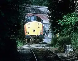 Moorswater lies in a valley which is spanned by Moorswater viaduct carrying the Cornish Main Line railway. The single-track Looe Valley Line branches from the main line at Liskeard railway station and descends into the valley allowing freights trains to access Moorswater Industrial Estate on the site of the former Moorswater railway station, once the centre of operations for the Liskeard and Caradon Railway.