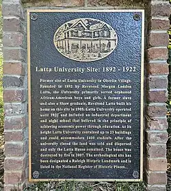 Latta founded Latta University in Oberlin Village, an antebellum enclave established by free Blacks in West Raleigh.[4][5] Latta University received its official incorporation on February 15, 1894,[6] following the acquisition of land in Oberlin Village and fundraising efforts to finance its construction, a process spanning three years.[7] Latta traveled across the North, making speeches and fundraising for the university .[8][9][10]