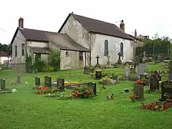 Morgan William(s) himself was buried in the graveyard in 1852. His bilingual gravestone (under the name ‘Morgan William’) has survived to this day. Also buried there are two victims of the 1875 disaster at the Lan colliery (Gwaelod-y-garth), including the 13 year-old Moses Llewelyn, who worked as a door-boy at the mine.[3]