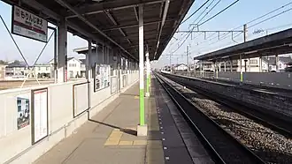The station has two opposed side platforms, connected to the station building by a footbridge.