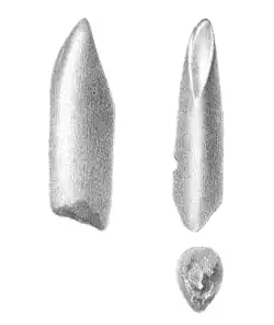 The French paleontologist H. E. Sauvage based this genus on a single worn tooth, apparently now lost, which he compared to those of Hypselosaurus.[1] Oddly, despite illustrations of the tooth, and the implications of comparing it to a titanosaur with narrow-crowned teeth, it was included as a synonym of Pelorosaurus in two major reviews.[2][3] Pelorosaurus, being a putative brachiosaurid, is assumed to have had broad-crowned teeth.