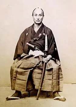 Moriyama Einosuke (森山 栄之助; July 10, 1820 – May 4, 1872) was a samurai during the Tokugawa shogunate, and an interpreter of Dutch and English. He studied English under Dutch merchants and Ranald MacDonald. He was called upon to assist shogunate officials during the "Manhattan Incident" of 1845, during which the American whaling ship Manhattan approached Edo to repatriate 22 castaway Japanese seamen. [1] As Chief Dutch Interpreter, he was later one of the chief men involved in the negotiations with Commodore Perry in regard to the opening of Japan to the outside world.