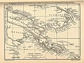 On 19 August 1884, Chancellor Bismarck ordered the establishment of a German protectorate in the New Britain Archipelago and north-eastern New Guinea.