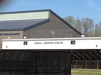 The stadium was officially renamed in 1999 to "Joseph J. Morrone Stadium".[10] In 2008, the Division of Athletics proposed to build a new basketball practice facility on the site of Morrone,[11] but that was later changed and it will now be built where the vacant Memorial Stadium now is.[12]