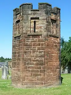 - Redgorton, Gowrie, Perth and Kinross (NO083283) – the church has been converted into flats, and the 1832-dated morthouse is of a massive construction.[27]