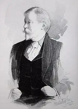 Some pencil sketches by Menpes were published in the Adelaide Observer in 1903. They are portraits of Sir Charles Todd, Sir James Fergusson and the Rev. Canon Green;[22] Dean Marryat, Sir Anthony Musgrave and Dr. Schomburgk;[23] Charles Mann, Sir Arthur Blyth and William Townsend[24] Sir William Milne, Thomas Playford and George Stevenson, Jun.[25]