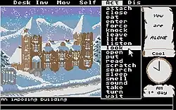 Mortville Manor (French: Le Manoir de Mortevielle) is a point-and-click adventure game developed and published by Lankhor released in 1987 for Atari ST. The game was ported to the Amstrad CPC, Amiga and Sinclair QL. An MS-DOS version was released in 1988 adapted by Clement Roques. Mortville Manor was the first game with speech synthesis and sold 10,000 copies around Europe.[1] Mortville Manor was followed by its sequel Maupiti Island.