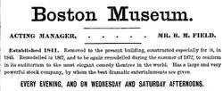 That same year, Kimball added a theater to his museum, although he called it a "lecture-room" in deference to the Puritan feeling in Boston. There he staged his own adaptations of Uncle Tom's Cabin among other productions.