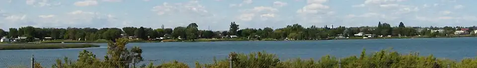 Moses Lake, on which the city lies, is made up of three main arms over 18 miles (29 km) long and up to one mile (1.6 km) wide. It is the largest natural body of fresh water in Grant County and has over 120 miles (190 km) of shoreline covering 6,500 acres (2,600 ha). Before it was dammed in the early 1900s and then incorporated into the Columbia Basin Project, Moses Lake was a smaller shallow lake.[7] To the south of the town is the Potholes Reservoir and the Columbia National Wildlife Refuge that has a number of seep lakes and vast amounts of migratory birds and other fauna natural to the area.