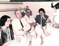 Gueron (middle) sitting with sixth President of Israel Chaim Herzog and Prof. Shimon Glick (shown from his back) in Soroka Medical Center, 1989