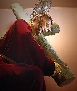 Passing through the main chapel, one has access to the sacristy, on the left, where the pulpit is, removed from the nave for better preservation; an expressive collection of processional Flags of the Divine; and a small chapel also of Rococo workmanship with gilding, closed by glass doors, with two processional images, one representing the Dead Lord and the other the Lord of the Steps (Jesus).[7][11]