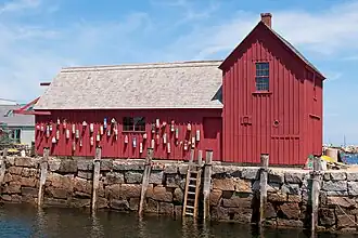 Motif Number 1, located on Bradley Wharf in the harbor town of Rockport, Massachusetts, is a replica of a former fishing shack well-known to students of art and art history as "the most often-painted building in America."[1][2] The original structure was built in 1884 and destroyed in the Blizzard of 1978,[1] but an exact replica was constructed that same year.[3]