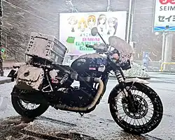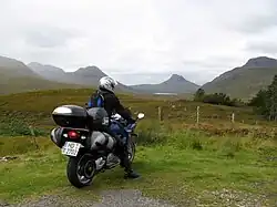 Motorcycle touring involves special equipment and techniques. A touring motorcycle optimized for long range travel and luggage carrying capacity may be used.[2] Special preparations involved include route planning for unfamiliar areas, packing tools that might be needed, finding food, making overnight stops, finding fuel in remote areas,[3][4] and physical care of the rider's body.[5] It may involve camping[6][7] or attending motorcycle rallies along the way.[3]