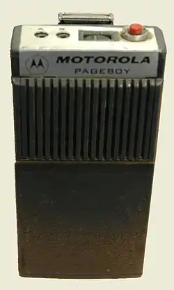 Motorola Pageboy was a pager produced by Motorola. In the 1960s, when pagers were mainly used by medical professionals, the Pageboy was considered "cutting edge and compact", measuring 5.25 inches by 2.36 inches.[1]