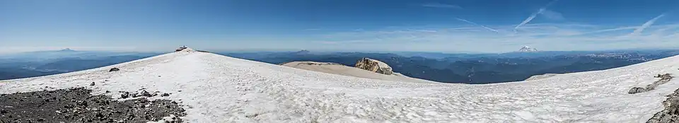 On a clear day from the summit, other visible volcanoes in the Cascade Range include: Mount Rainier, Mount Baker, and Glacier Peak to the north, as well as Mount St. Helens to the west, all in Washington; and Mount Hood, Mount Jefferson, and the Three Sisters, all to the south in Oregon.[29][30]