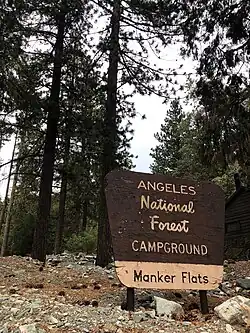 Manker Flats Campground is available for the public to camp in on a first come-first served mechanism. It is located 3 miles northeast of Mt. Baldy Village on Mt. Baldy road, in an open pine forest. It boasts 21 campsites with features such as stoves, piped water, toilets and tables. However, there are no facilities for showers or sanitary disposal. Fees for camping overnight are $12 per night, and an additional $5 for extra vehicles.[32]