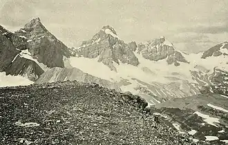 ![]() East aspect, centered, circa 1902 (Mount Swiderski to the left) | |