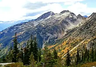 ![]() Benzarino's east aspect seen from Maple Pass Trail | |