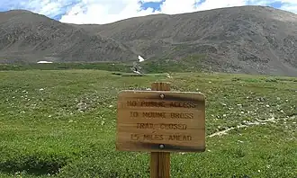 In 2005, the summit of Mount Bross was closed to the public because of safety concerns related to mines and trail access through private land.[8][9][10]