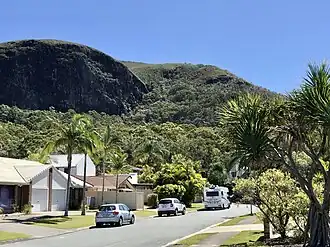 The mountain Mount Coolum (from which the suburb takes its name) is in the centre of the locality (26°33′41″S 153°05′03″E / 26.5615°S 153.0841°E / -26.5615; 153.0841 (Mount Coolum)). Historically the mountain was known as Half Way Lump.[3] It is 207 metres (679 ft) above sea level. The mountain is protected within the Mount Coolum National Park.[5][4]