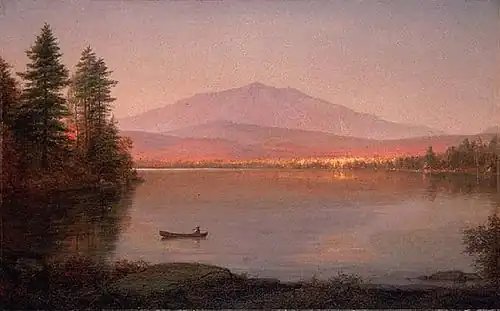 In the 1840s Henry David Thoreau climbed Katahdin, which he spelled "Ktaadn"; his ascent is recorded in a well-known chapter of The Maine Woods.[15] A few years later Theodore Winthrop wrote about his visit in Life in the Open Air. Painters Frederic Edwin Church and Marsden Hartley are well-known artists who created landscapes of Katahdin. On 30 November 2011, Christie's auctioned Church's 1860 painting Twilight (Katahdin) for $3.1 million.