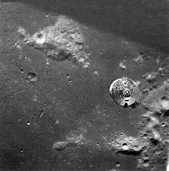 Mount Marilyn is in the upper left of this photograph from Apollo 10. North is to the left.