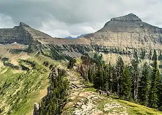 Like other mountains in Glacier National Park, Mount Morgan is composed of sedimentary rock laid down during the Precambrian to Jurassic periods. Formed in shallow seas, this sedimentary rock was initially uplifted beginning 170 million years ago when the Lewis Overthrust fault pushed an enormous slab of precambrian rocks 3 miles (4.8 km) thick, 50 miles (80 km) wide and 160 miles (260 km) long over younger rock of the cretaceous period.[3]