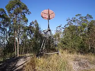 The southern summit of the mountain has an abandoned triangulation station with a collapsed radio tower, while the top of the mountain has a trig tower for taking bearings and measurements. The top of the mountain offers views of Brisbane and Moreton Bay.