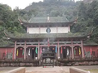 Mount Qiyun (simplified Chinese: 齐云山; traditional Chinese: 齊雲山; pinyin: Qíyún Shān; lit. 'Cloud-High Mountain') is a mountain and national park located in Xiuning County in Anhui Province, China. It lies at the foot of the Huangshan mountain range some 33 kilometres (21 mi) to the west of Huangshan City and is known as one of the Four Sacred Mountains of Taoism. Noted for its numerous inscriptions and tablets, as well as monasteries and temples, particularly dedicated to Xuantian Shangdi, the highest point of the mountain rises to 585 metres (1,919 ft).