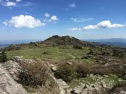 ![]() View west-northwest towards Mount Rogers from the northern rocky outcrop along the Wilburn Ridge Trail | |