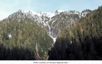 Mount Seattle is a 6,246-foot (1,904-metre) mountain summit deep within Olympic National Park in Jefferson County of Washington state.[3] Part of the Olympic Mountains, Mount Seattle is situated 7.5 miles southeast of Mount Olympus, and set within the Quinault Rainforest and Daniel J. Evans Wilderness. The nearest higher neighbor is Mount Meany, 1.65 miles (2.66 km) to the north-northwest, and Mount Noyes rises one mile to the northwest. Precipitation runoff from the mountain drains north into headwaters of the Elwha River, and south into tributaries of the Quinault River. Topographic relief is significant as the northeast aspect of the peak rises over 3,800 feet (1,200 m) above the Elwha valley in approximately 1.5-mile. Low Divide forms the saddle between Mt. Seattle and Mount Christie.