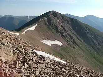 The walk from the trailhead at Loveland Pass to the peak measures about two miles, but it features an elevation gain of over 1,000 feet (300 m) in the initial mile of hiking.[9][10] Because of its relatively convenient accessibility by automobile from population centers like Denver, Boulder, and Breckenridge, the mountain is a popular destination for hikers.[8]